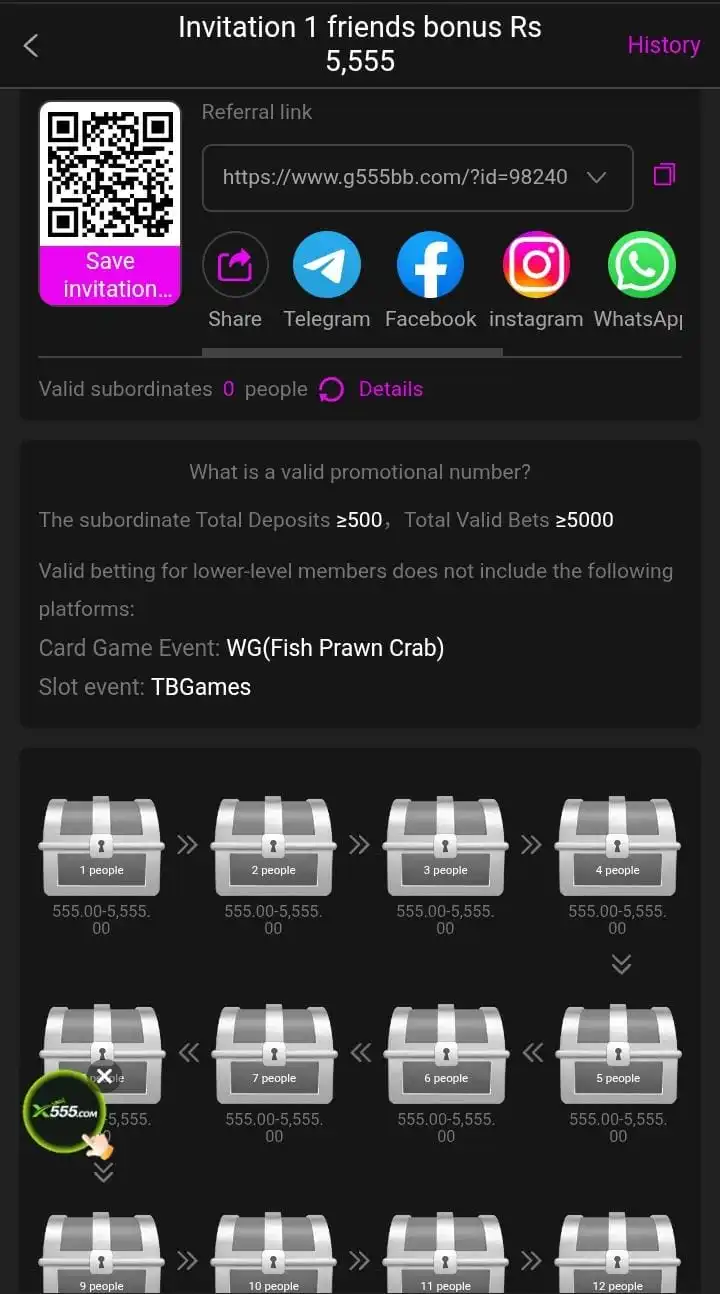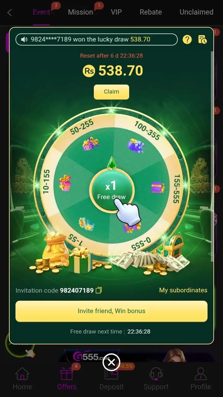 • Make sure that you take advantage of the bonuses provided by the G555 game, like referral and daily bonuses.
